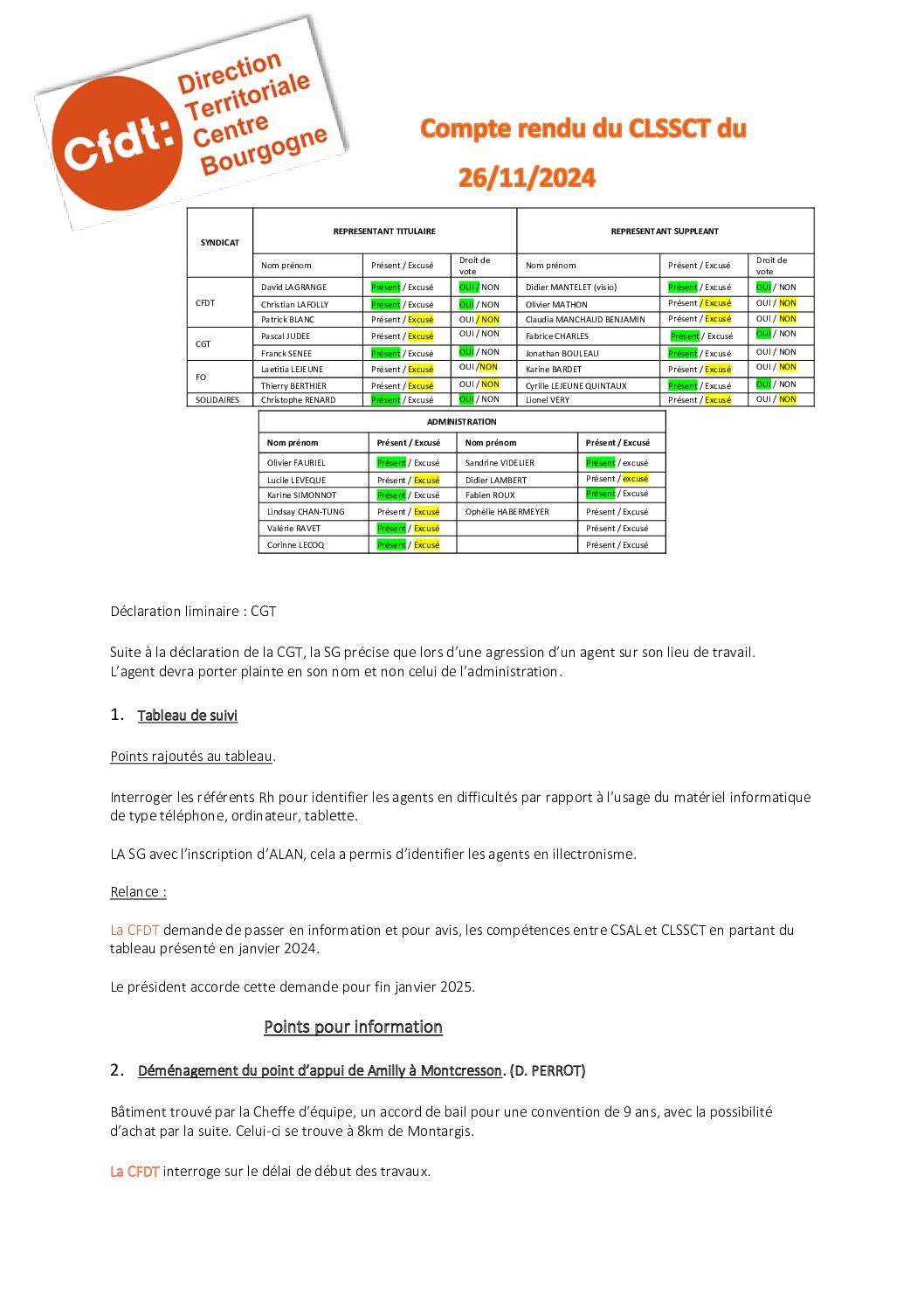 Compte-rendu de la CSSCT du 26 novembre 2024
